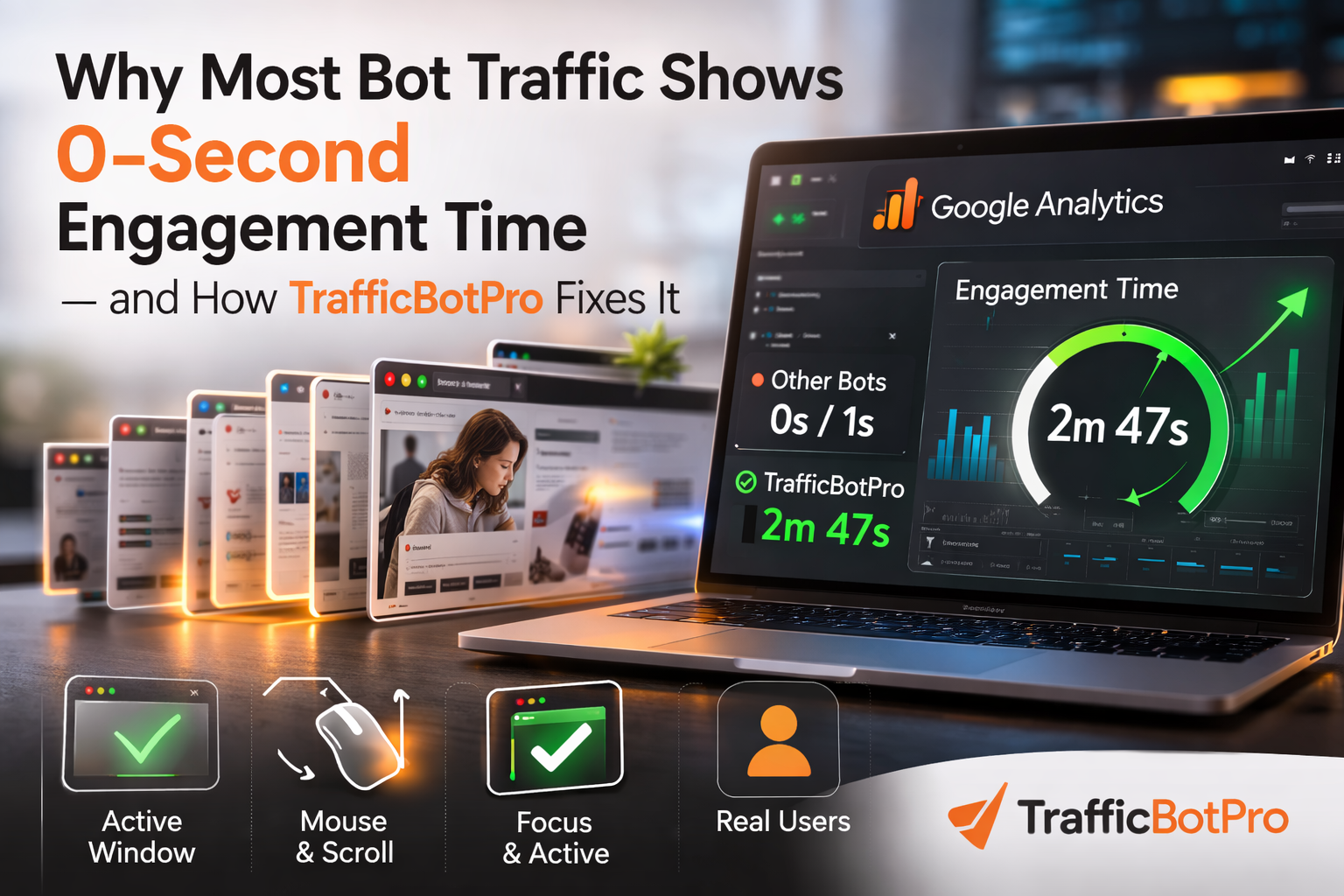 Why Most Bot Traffic Shows 0-Second Engagement Time in Google Analytics — and How TrafficBotPro Solves It